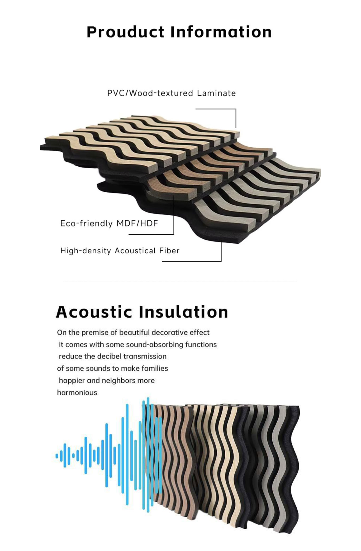 Belägen i Huzhou City, Zhejiang-provinsen, Kina, är en specialtillverkare av nya dekorativa material, kompositdäck, kompositbeklädnad, kompositstaket och utomhus-DIY-plattor. Våra huvudsakliga produkter är kompositdäck, kompositbeklädnad, kompositstaket och relaterade tillbehör. Som Partihandel 3D-vågade akustiska väggpaneler. Vår fabrik har över 20 produktionslinjer och kan erbjuda dig produkter av god kvalitet till lågt pris. Vi har upprättat ett strikt kvalitetskontrollsystem enligt ISO- och CE-standarder för att säkerställa kvaliteten på våra maskiner. Utvecklingsteamet kan erbjuda anpassade tjänster för olika formar för att möta kundernas olika behov. Från försäljning till tillverkning och efterförsäljning ger vi snabb support och service för att möta dina behov. Genom att kontrollera utvecklings- och produktionsprocesserna kan vi med säkerhet erbjuda dig konkurrenskraftiga priser. 3D-vågade akustiska väggpaneler leverantörer i Kina. Välkommen till vår fabrik och hoppas på att samarbeta med dig inom en snar framtid!